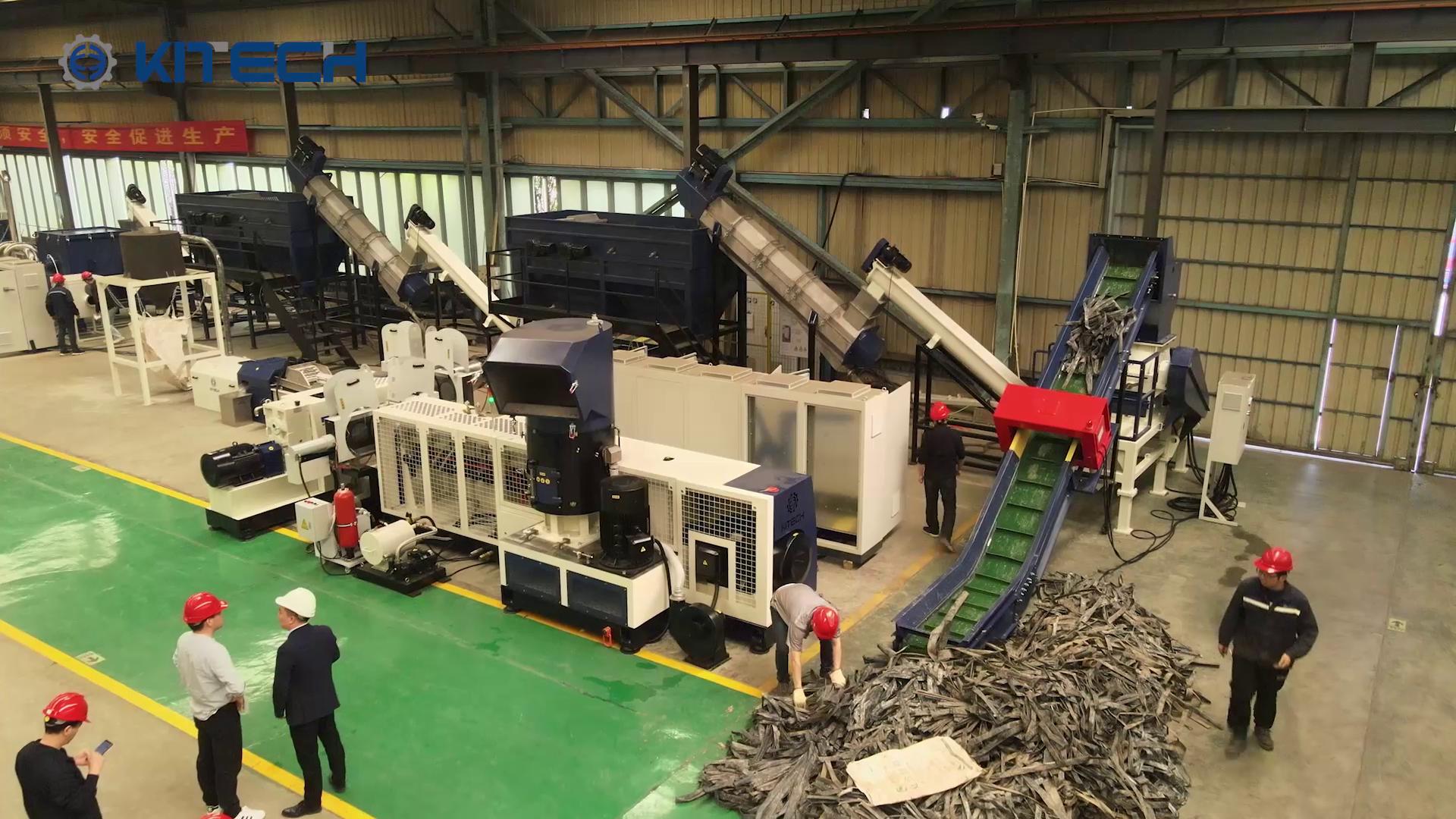农用滴管带存在大量的泥沙,这就要求清洗设备具备高度的清洁功能,漂洗槽安装独立变频器控制小拨轮,能使塑料能充分浸入水中,摩擦去污,后端安装大拨轮,使物料与水分离,将物料送入下游设备,同时还能减少水损耗,根据物料特性,我们特别设计了气动闸板阀,泥沙污渍沉淀一段时间后,系统将自动启动闸板阀排出污泥,自动化程度更高,同时节水减排,另外加装了摩擦洗,通过高速旋转将物料与杂质分离,清洁能力更高,清洗后的干净片料水分含量<1%,可直接送入造粒系统挤出成粒子。